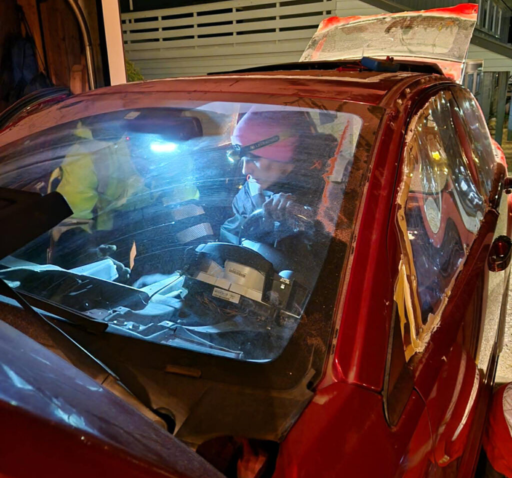 – Etter å ha hatt et par biler som spinner foran, bestemte vi oss for å bygge selv. En Mitsubishi Lancer står klar til ribbing. Men vi hadde lyst å lage klar denne Dodge Caliber først, forteller familie-teamet der alle kjører for NMK Egersund.