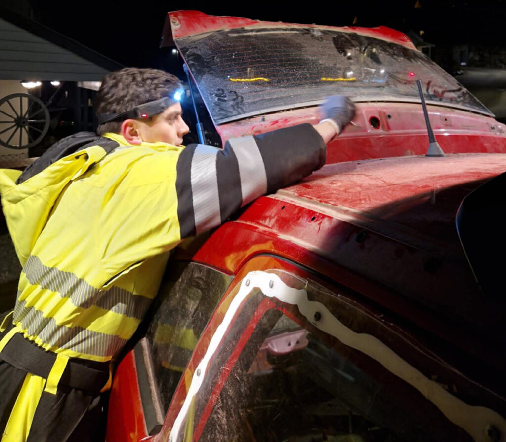 LETTES: Det blir plastikk i rutene og 1.300 kilo originalvekt reduseres noe med noen velkjente bilcross-triks. Foto: Privat.