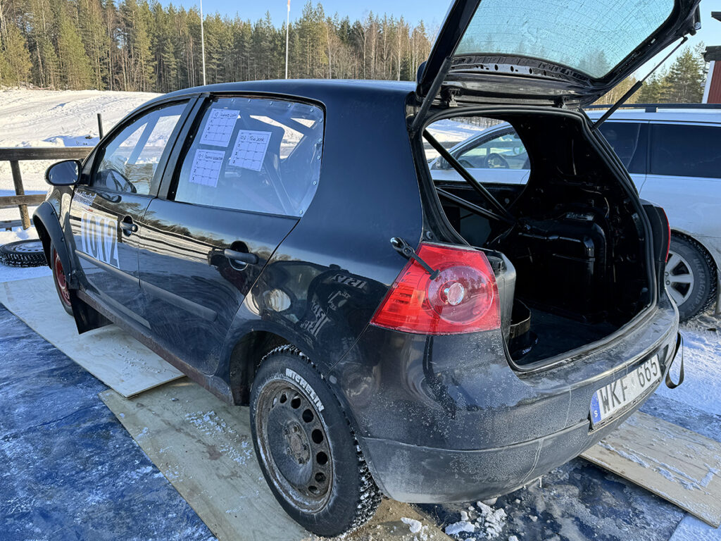 MED SKILTENE FORTSATT PÅ: En VW Golf som kunne passert som en vanlig gatebil ved første øyekast. Foto: Stian Ormestad, Bilcross.no.