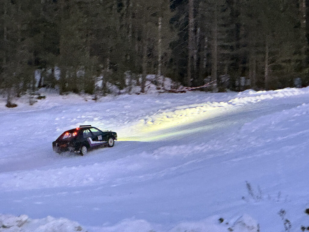 UKJENT LYSSIGNATUR: Du skulle tro, av lysene, at det kom en gammel Volvo 164 over kulen, men neida….. Foto: Stian Ormestad, Bilcross.no.