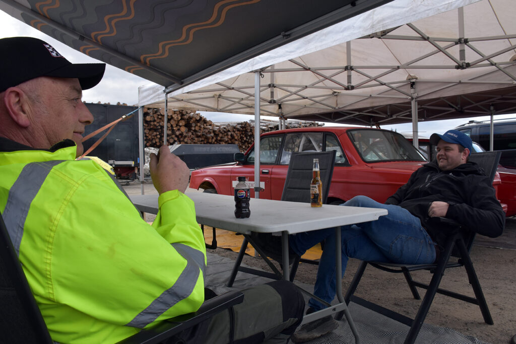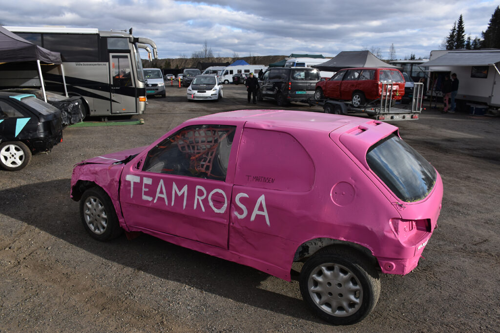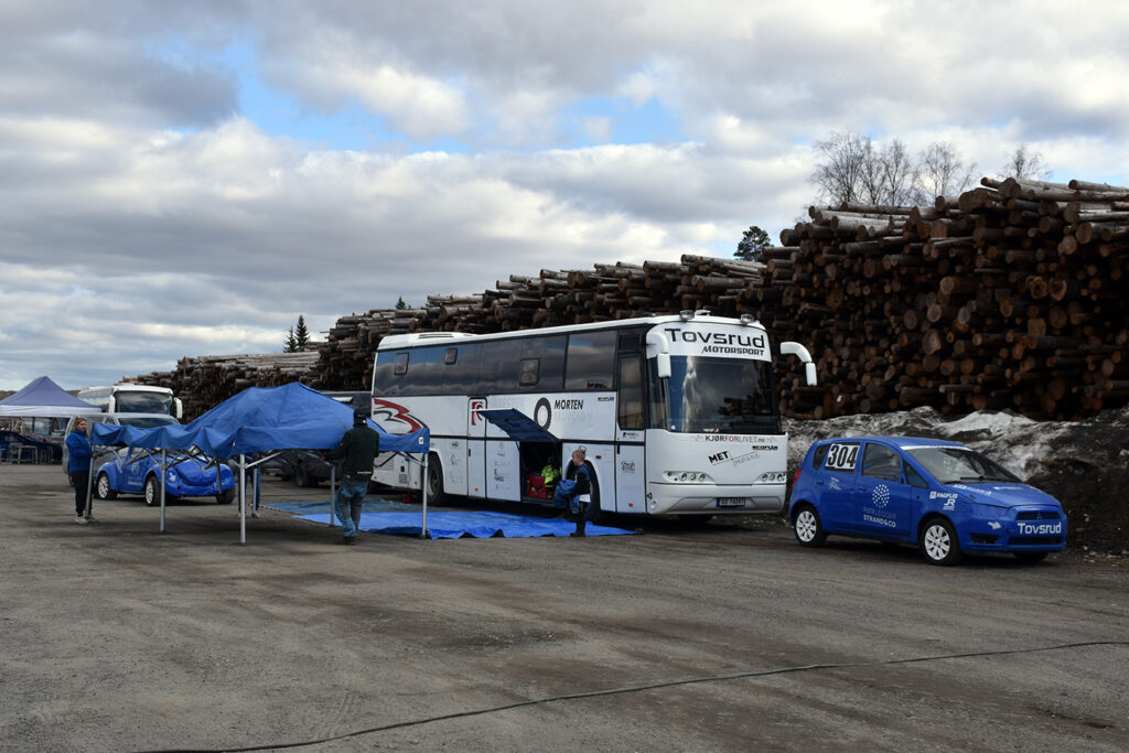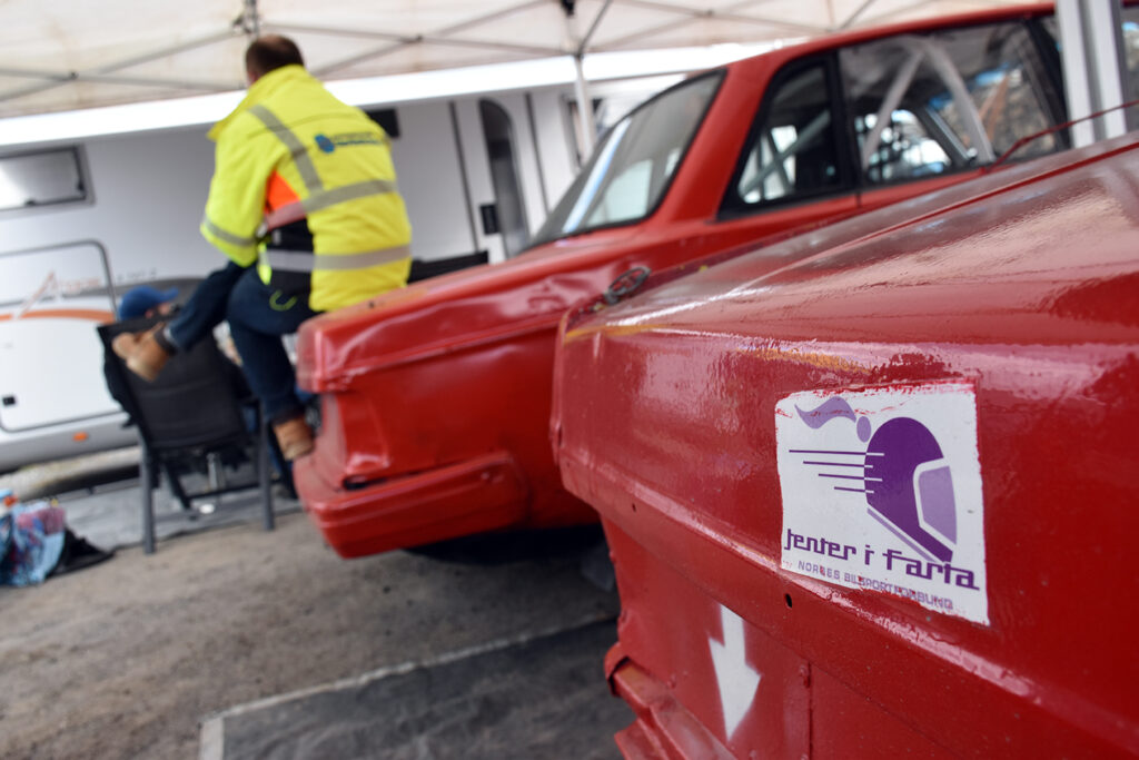 Reservedeler må til, før en hard helg på bilcrossbanen. Foto: Stian Ormestad, Bilcross.no.