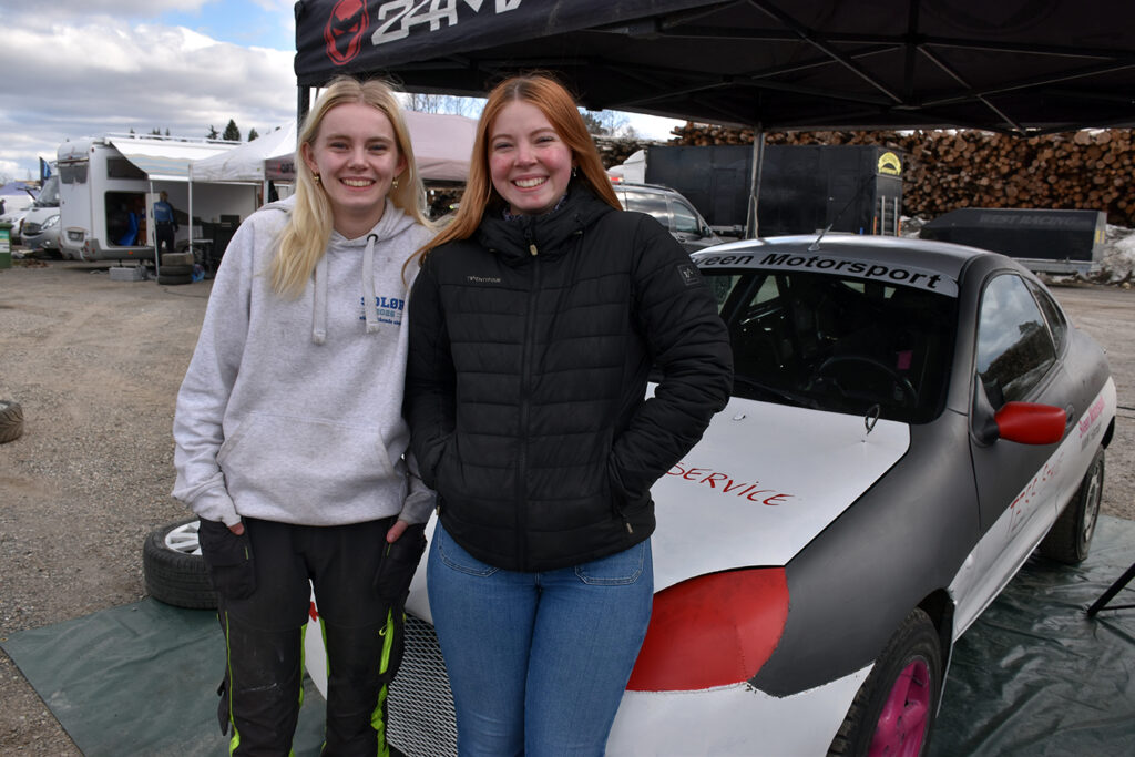 To Sveen-søstre på en bil. Klar for sesongstart på Gardermoen. Foto: Stian Ormestad, Bilcross.no.