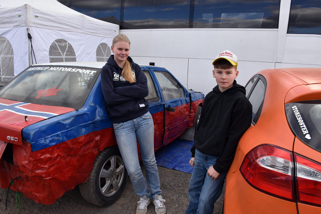 To Sveen-søstre på en bil. Klar for sesongstart på Gardermoen. Foto: Stian Ormestad, Bilcross.no.