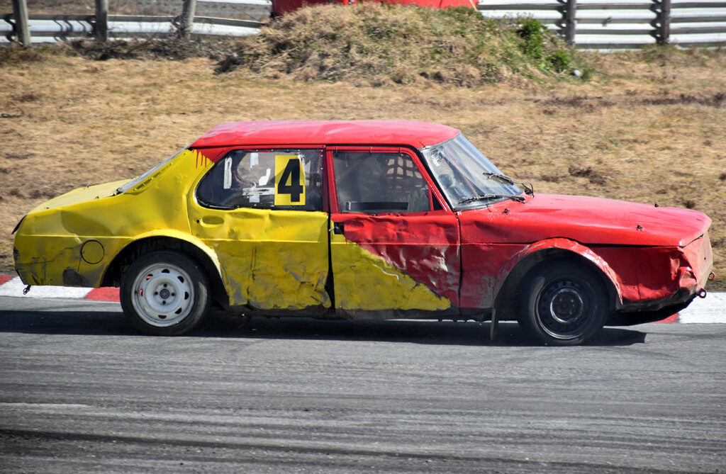 VINNERBILEN: En Saab som er gått over både en og to og tre ganger ekstra av «Goffa», som tok både far og sønn Bråten inn til seier i Vårløp på Vinjarmoen 2026. Foto: Stian Ormestad, Bilcross.no.