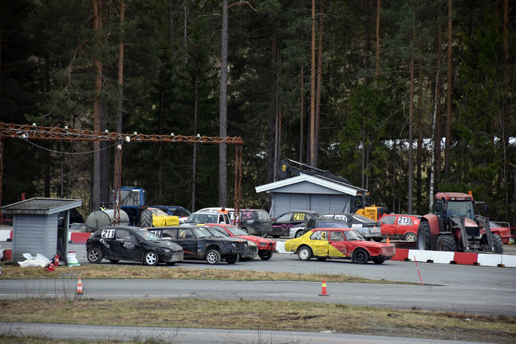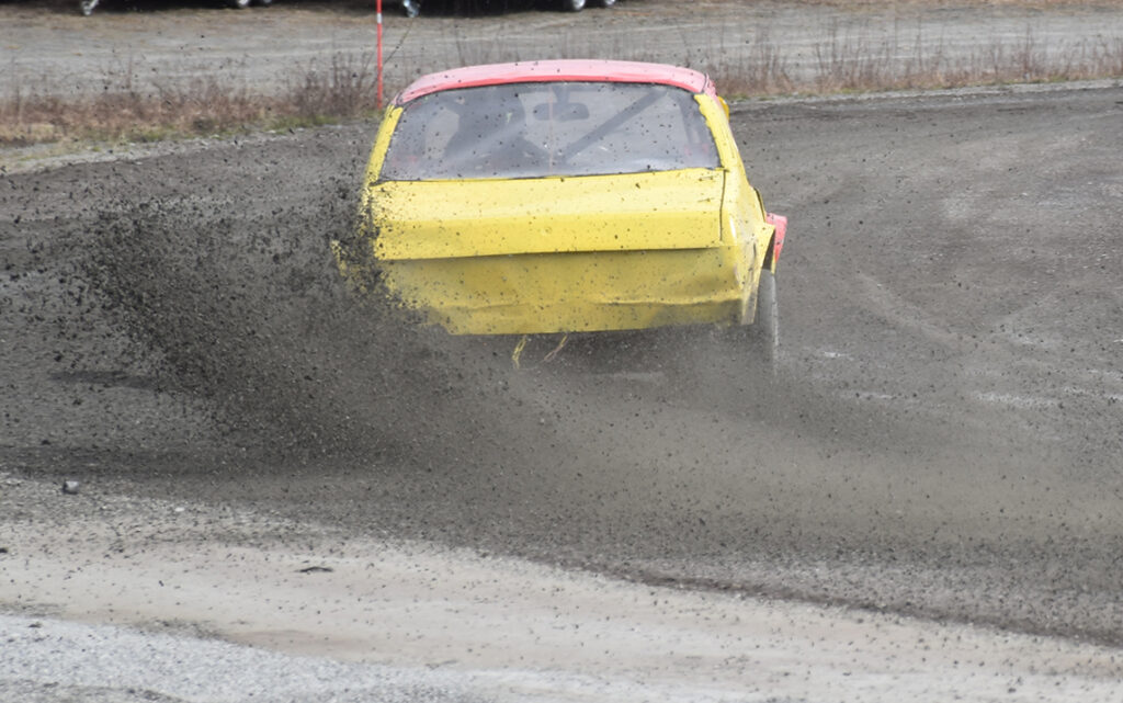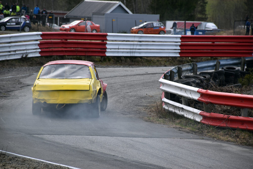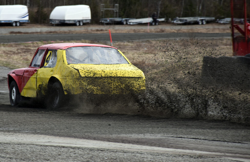 KASTER GRUS: Saaben gikk 62 runder på Vinjarmoen denne helga. Foto: Stian Ormestad, Bilcross.no.