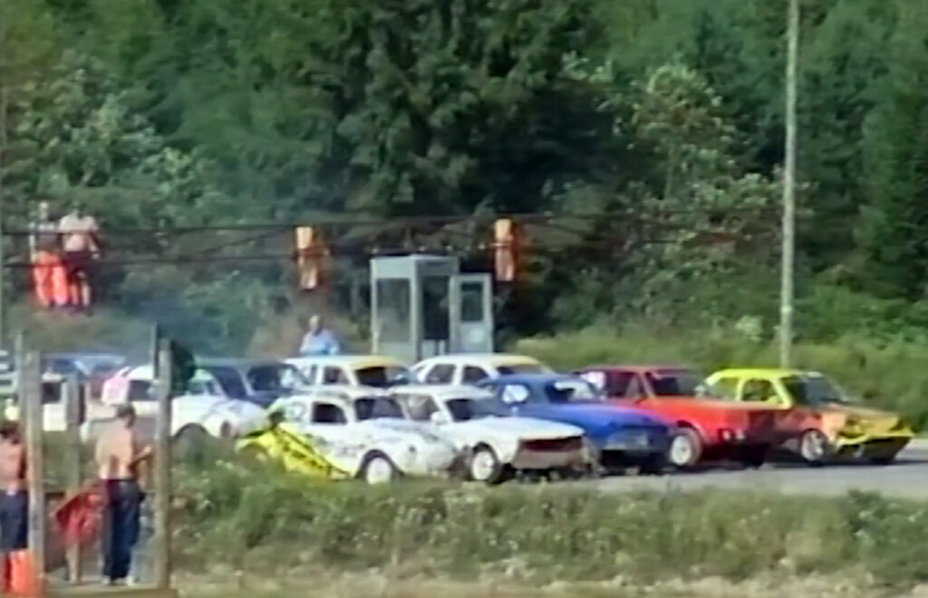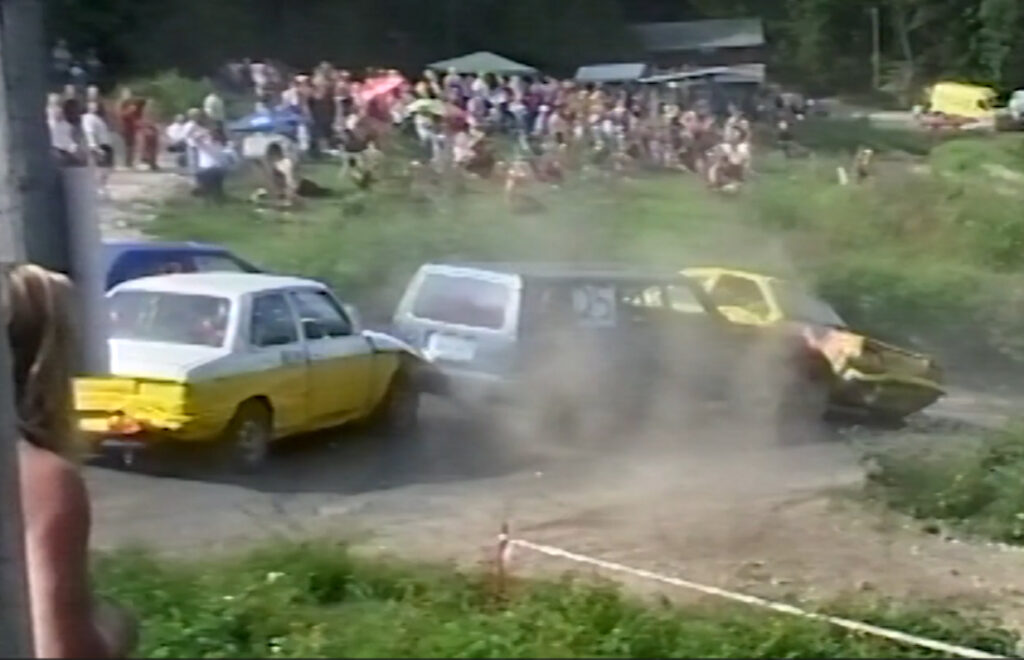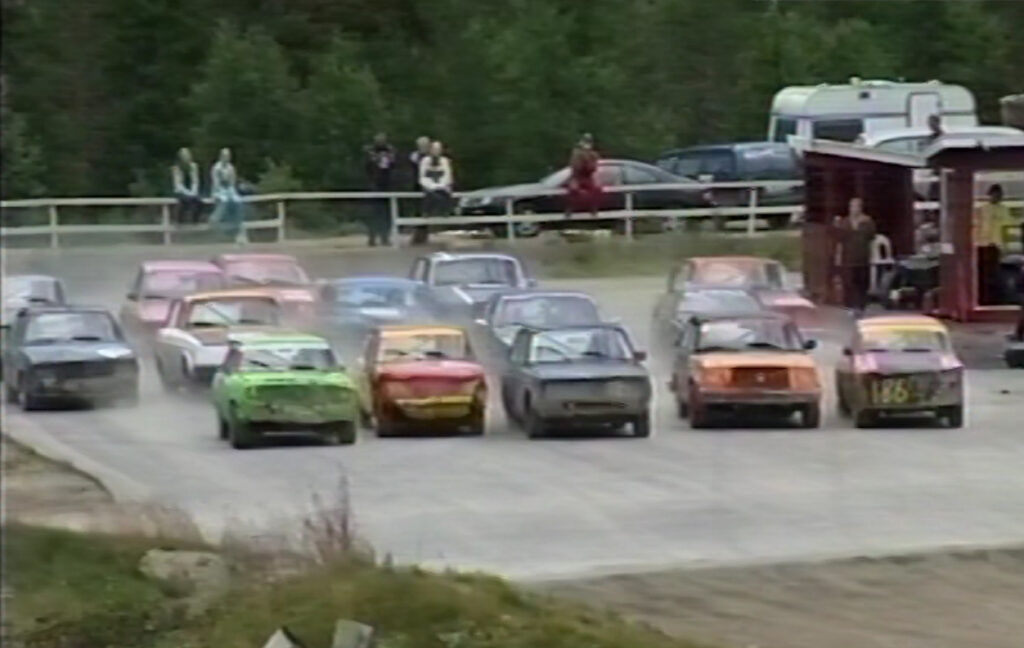 RØVERHEAT: Starten på slutten av røverheat i bilcross i gamle dager, der ambulansen måtte kjøre i skytteltrafikk til sykehus. Foto: Stian Ormestad, Bilcross.no.